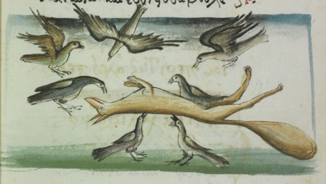 The Savior said in the Gospel, "I have the power to lay down my life, and I have the power to take it again" [John 10:18]. And the Jews were angered by his words. There is a species of bird in the land of India which is called the phoenix, which enters the wood of Lebanon after five hundred years and bathes his two wings in the fragrance. He then signals to the priest of Heliopolis (that is, the city named Heliopolis) during the new month, that is, Adar, which in Greek is called Farmuti or Phamenoth. When the priest has been signaled, he goes in to the altar and heaps it with brushwood. Then the bird enters Heliopolis laden with fragrance and mounts the altar, where he ignites the fire and burns himself up. The next day then the priest examines the altar and finds a worm in the ashes. On the second day, however, he finds a tiny birdling. On the third day he finds a huge eagle which taking flight greets the priest and goes off to his former abode. If this species of bird has the power to kill himself in such a manner as to raise himself up, how foolish are those men who grow angry at the words of the Savior, "I have the power to lay down my life, and I have the power to take it again" [John 10: 18]. The phoenix represents the person of the Savior since, descending from the heavens, he left his two wings full of good odors (that is, his best words) so that we, holding forth the labors of our hand, might return the pleasant spiritual odor to him in good works. Physiologus, therefore, speaks well of the phoenix.