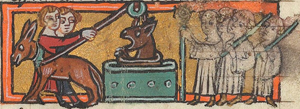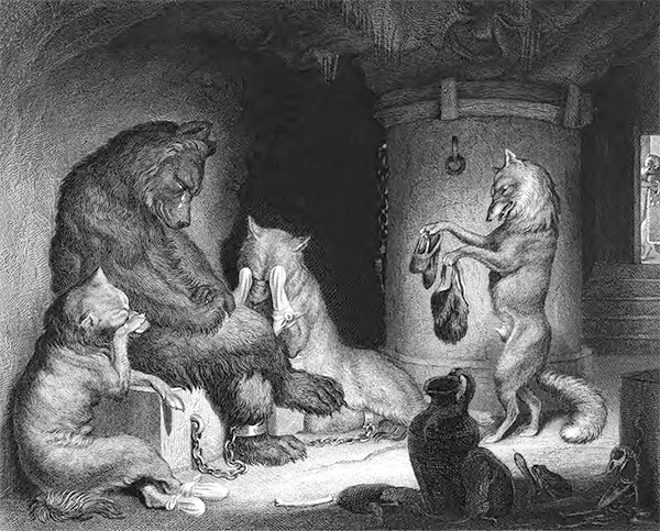 In Branch I of the French Roman de Renart, King Noble the lion has summoned Reynard to court to answer for his crimes, but the fox refuses to appear. Brun the bear is sent to fetch him, and travels to Reynard's castle. Reynard tricks Brun, telling him there is a place he knows where the bear can have as much honey as he can eat. Brun eagerly follows Reynard's instructions, but soon regrets it.